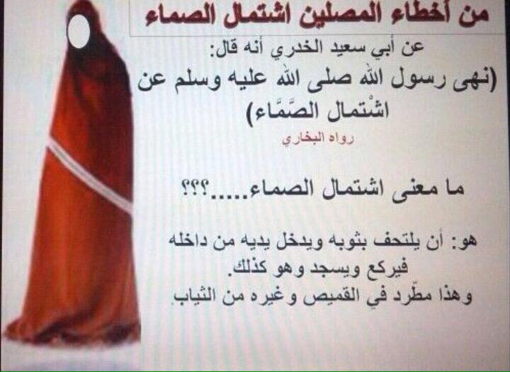"نَهَى رَسُولُ اللَّهِ صَلَّى اللهُ عَلَيْهِ وَسَلَّمَ عَنِ اشْتِمَالِ الصَّمَّاءِ".